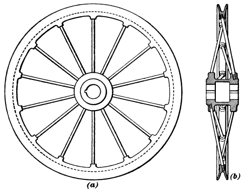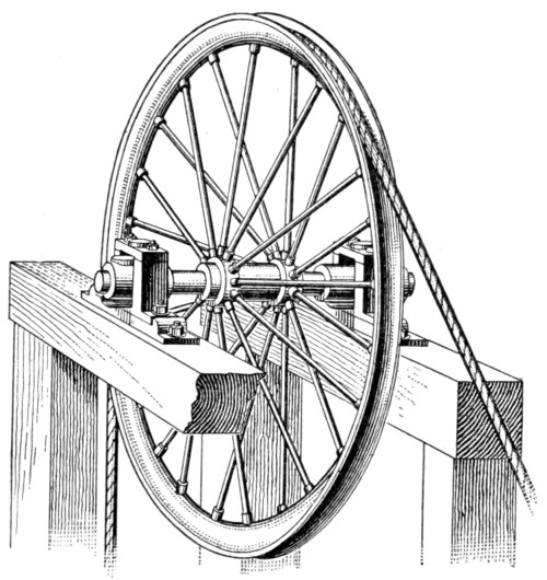 Springs are sometimes placed under the journals of the head-sheaves to lessen the strain on the rope while starting the load; the 15-foot head-sheaves of the Robinson deep mine at Johannesburg have locomotive springs under the journal boxes, the actual load on each spring due to the weight of the sheave, rope, skip, and rock being equal to about [Pg 40] 20,000 pounds; it was estimated that the sheave would thus be lowered by the load on it, about 3 inches, which would be equal to an action of a spring giving motion of 6 inches at the cage. Springs can often be used both on the rope and under the sheave in the same plant to advantage.