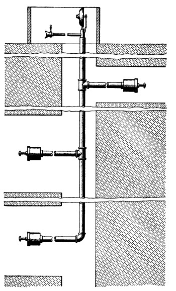 47. Speaking Tubes.—The laws of certain states require speaking tubes, in addition to the ordinary means of signaling. These speaking tubes are generally made of 2-inch iron pipe and are from 300 to 1,500 feet long, and are often provided with whistles at the end of the pipe and at each level of the mine, by which the attention of persons at any level can be attracted or the whistle may be omitted and the attention of persons attracted merely by rapping on the pipe with a piece of iron.
