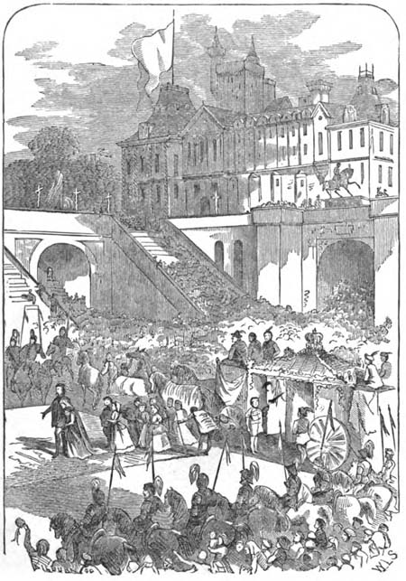 [136]The kings of all the countries round about came with their queens, and their courts, and their mounted guards, and their bands of music, and their waving banners. There were illuminations in the cities, and fires blazed upon the mountain-tops. Prisoners were released, and gold and silver thrown by handfuls to the poor. Tables were spread in the streets, that everybody might feast.