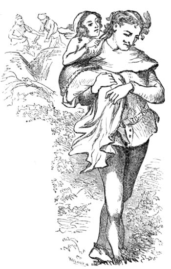 But here he was interrupted by loud cries from the children, who came running to them, calling out, that there were, O so many horses, and soldiers, and coaches larger than their hut, all covered with gold and silver, and great lords in purple and scarlet with gay feathers and jewels, all sparkling and shining! Rosebud and Myrtle must run quick! Quick!