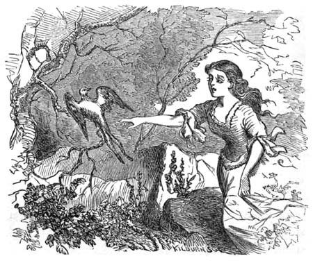 And while they were gazing, she began to fly slowly around the apartment, and disappeared at last through an open window. But still they heard her voice singing to them her last farewell:—