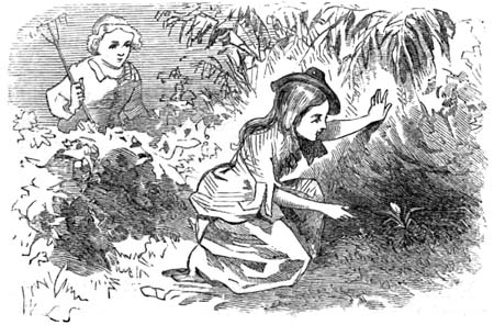 At length one little girl whispered to Rosebud, pointing at the same time to a clump of bushes at a little distance.