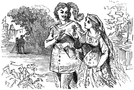 At a little distance they saw, walking towards[135] them, the king and his queen. As they met, Myrtle held out to the king the pretty token he had just received from Rosebud,—held it out doubtfully, as if fearing his displeasure.