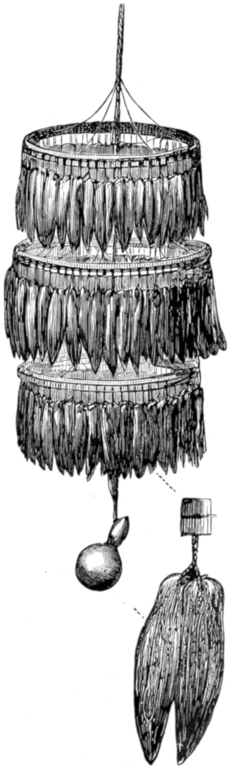 The ordeal which a young man, who shows some signs of the diviner’s gift, has to undergo before becoming an accredited meetway is an extremely difficult one. “A ladder is prepared, the steps of which[1522] consist of sword-blades with the sharp edges turned upward, and this is reared against a platform thickly set with sharp spikes. The barefooted novice ascends the perilous path to fame, and seats himself on the spikes without any apparent inconvenience; he then descends by the same ladder, and if, after having been carefully examined, he is pronounced free from any trace of injury he is thenceforward accepted as a true diviner.”