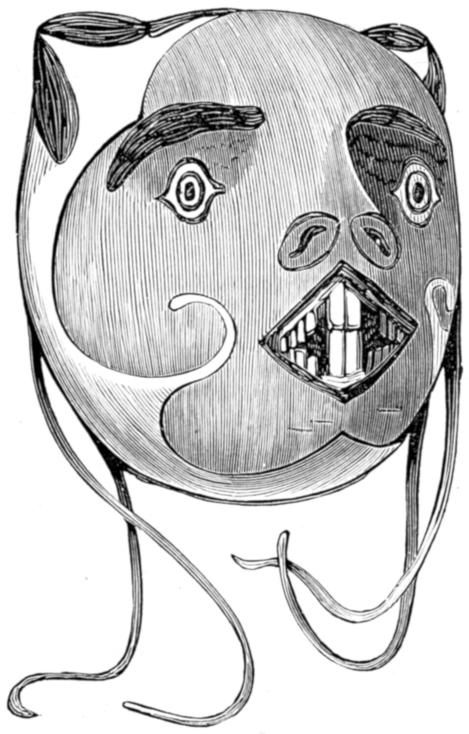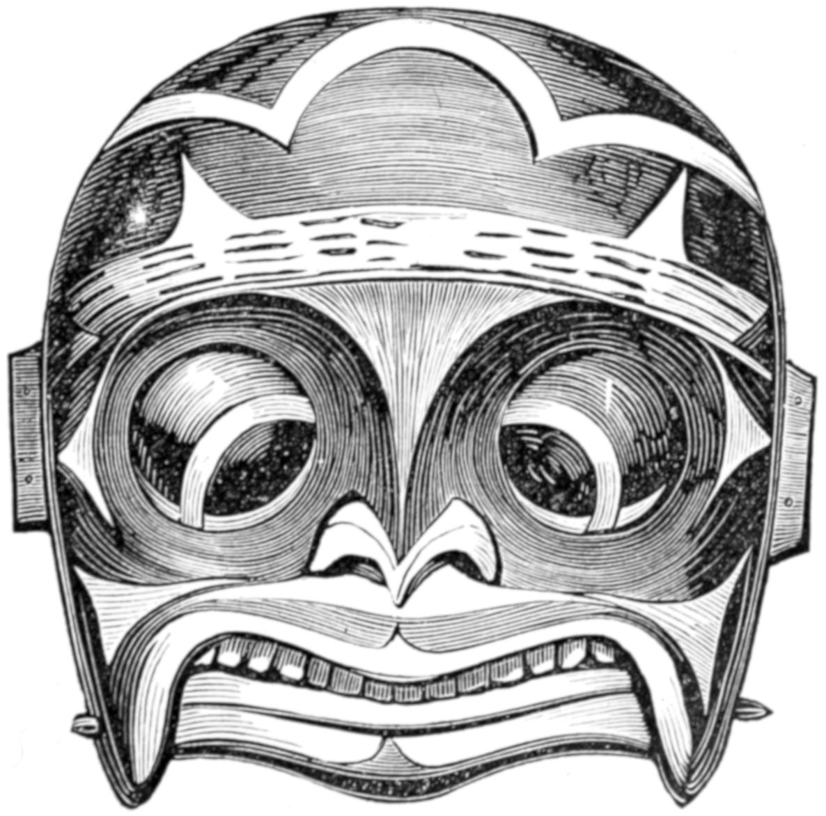 In the death-dance all classes and ages participate,—men, women, and children,—each carrying a small stick with which they beat time as they move round the hall with measured step, which is a sort of prance and side-shuffle. The drummers vigorously beat their instruments, and ever and anon the dancers burst into loud yells and increase the speed and violence of their movements.