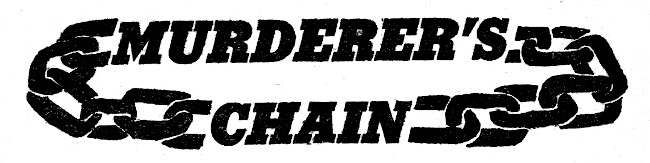 With a knowing nod of his head, Rosy leaned forward and lifted my wrist. He opened the catch with a lazy flick of his fingers. I was breathing hard and scared half out of my wits but I was caught in the trap that Rosy had set for me. Maudie dead, myself a millionaire, and no chance of being caught. This was too good to pass up. I knew it and so did Rosy. All we had to do was agree on terms. Half an hour later when I left the House of Fantastic Jewelry, the royal purple box with the Murderer's Chain lay in my pocket, beautifully gift-wrapped.
