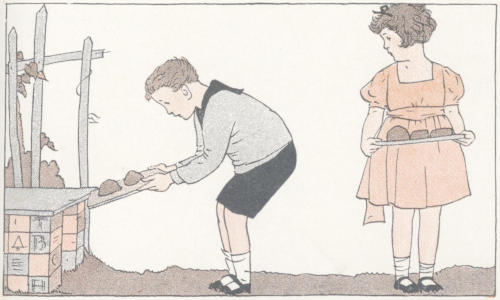 Construction. Let the children use building blocks to represent the baker’s shop with its show case and shelves where he sells his bread and cake and pies. His kitchen, too, is of great interest to children; if suitable arrangements can be made, take the class to visit a baker’s kitchen. After such a visit the baker’s kitchen and oven should be constructed; the children will doubtless find ways of making bread tins and long wooden shovels or paddles for taking bread from the oven.