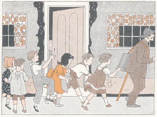 If Book Two of the Eleanor Smith Music Course is at hand, teach the children “The Fruit Vender” and “Street Sounds” when studying the banana man, “Perrie, Merrie, Dixi” when reading “Father Tells a Story,” “Shoe and Slipper” when studying the shoemaker, and “The Concert” in connection with the organ-grinder. The children’s song books listed above contain many excellent songs of the occupations.