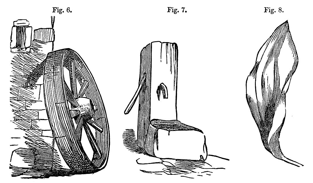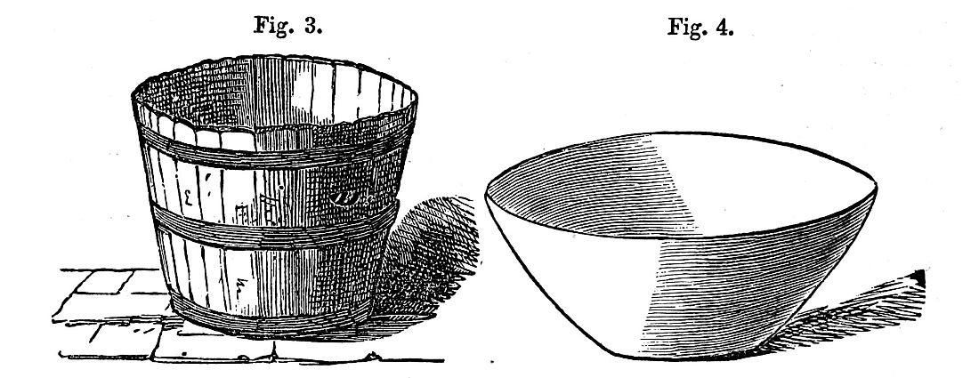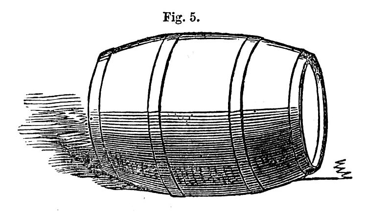 [3] The flour and biscuit which are taken out to sea in the British navy are packed in casks of wrought-iron. These were formerly painted, to prevent rust, and also to make them water-tight; but the paint was found to give a bad taste to the flour, &c., and they are now coated outside with a waterproof composition of caoutchouc, black resin, and Venice turpentine.