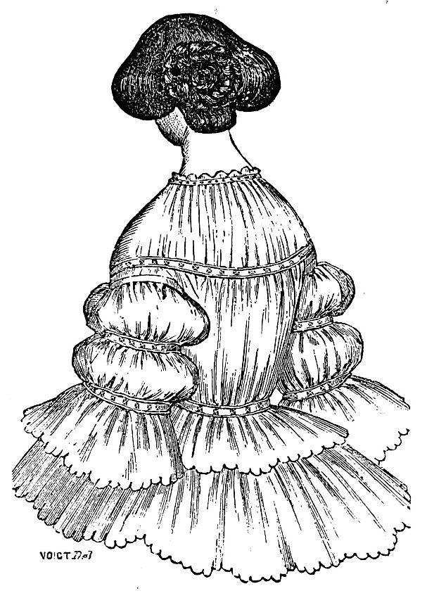 IT is as well to mention in our chat the reason of the unavoidable delay of the promised volume on nursery matters, announced some three months since. Its design and scope were altered when the illustrations and much of the text were prepared, which has delayed its appearance. It is, however, now nearly ready, and will be forwarded as early as possible to the numerous subscribers who have sent us their orders. They will scarcely regret the delay, when the volume in its present form reaches[Pg 571] them. If, however, there are any who are tired of waiting "for the play to commence," they can have the price of tickets refunded at the office—or, to speak plainly, we will willingly return any moneys received in advance, if any desire it, by sending post-office stamps to the amount. However, our readers need not fear that their claims will be forgotten as soon as the book is ready. It will be found simple, practical, and reliable in its various directions for the preparation of an infant's wardrobe, short clothes, flannels, etc. etc.