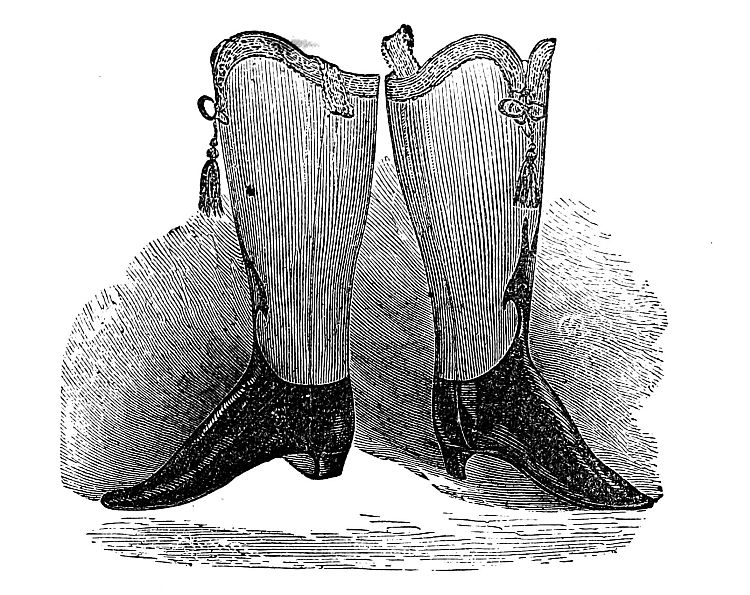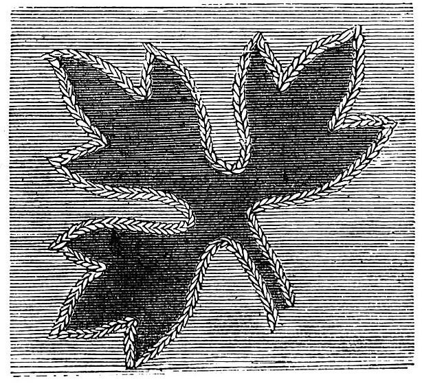 Garnets are sometimes set on a glowing red or crimson ground, which gives them a singular flashing, vivid color. One of the favorite designs is in imitation of the section of a branch or stem of a tree, encrusted with gold and garnets. These are, of course, large and showy brooches. We have seen a few encrusted with turquoise in the same style. Enamelled ornaments are still worn, but are not so much the rage as for a few years past. For mourning brooches, see the fashion article of the present month.