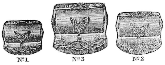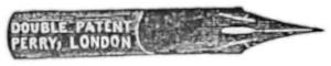 The Elastic Holder is so constructed as to impart an agreeable softness and flexibility to the Pen, rendering it so unconstrained in its action as not to fatigue the hand. This Holder facilitates the progress of the Pen over every description of paper. It may be had with the Perryian Pens, at an advance of Threepence per Card; or separately, at Threepence each. Each Holder is stamped with the words “Patent, Perry, London.”