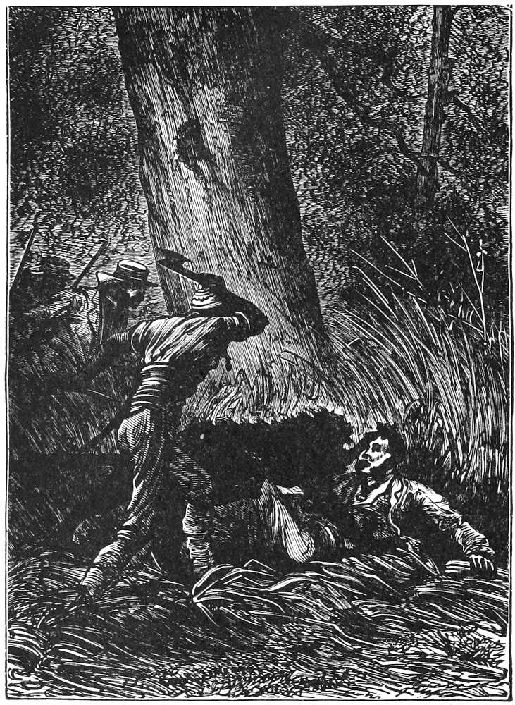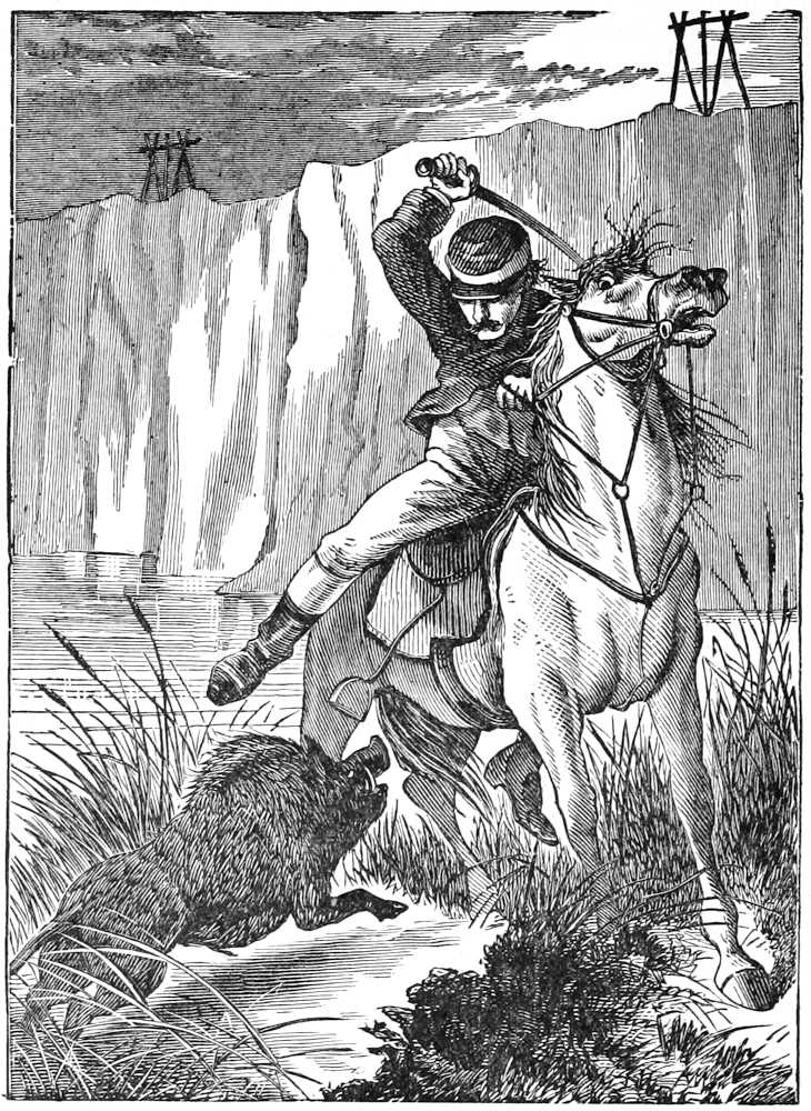 The ball struck the great beast just behind his shoulder. It did not kill him, but it stopped his onward course. He turned toward the hill, and at that moment the horse tore himself loose and galloped away.