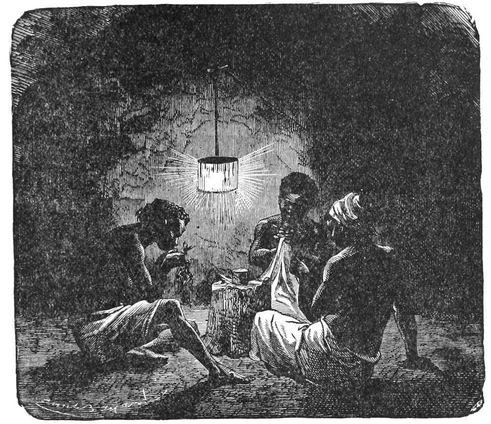 “What!” cried the chief, walking from one enclosure to another, “Here lie buried seventy-two thousand Cabordmen, and here forty-one thousand and three hundred Cabordwomen, and here thirteen thousand, six hundred and fifty-four unmarried Cabordmen and women! Comrades, we have found them! The whole nation lies buried here!”