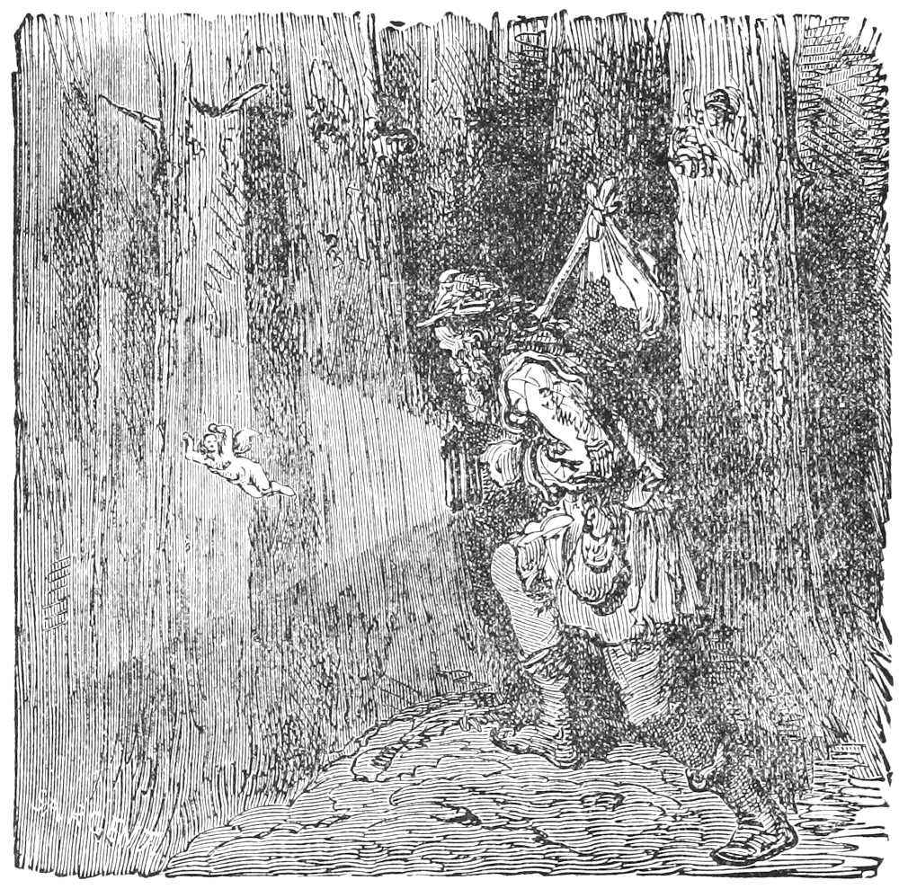 He left the harp reluctantly, and started on his homeward journey, but had not gone far before he had to lie down and rest. His head ached, and all his limbs felt tired and sore. It is probable he would have been obliged to spend the night in the forest, if some marketmen had not come along the road, and taken him home in their wagon.