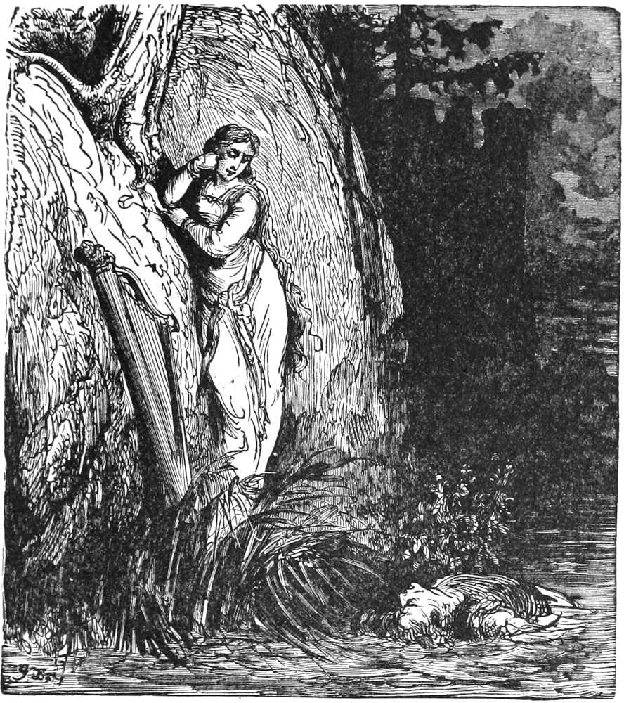 When the Nix heard the plunge into the water she supposed that all was over; and, standing her harp against a rock, she leaned her head upon her hand, and thought sorrowfully of the bright boy who had come to such a sudden end through his own folly.