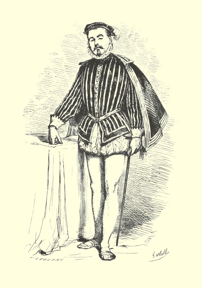 Au bout d’une heure tout fut changé: la vieille salle était parée, et la table étincelait. On entendit alors un bruit de chevaux dans la rue. La lueur des torches portées par les cavaliers de l’escorte fit mettre le nez à la fenêtre aux bourgeois du quartier. Ce tumulte fut rapide. Il ne resta sous les piliers que la reine-mère et son fils, le roi Charles IX, Charles de Gondi nommé grand-maître de la garde-robe et gouverneur du roi, M. de Thou, le vieux conseiller, le secrétaire d’État Pinard et deux pages.