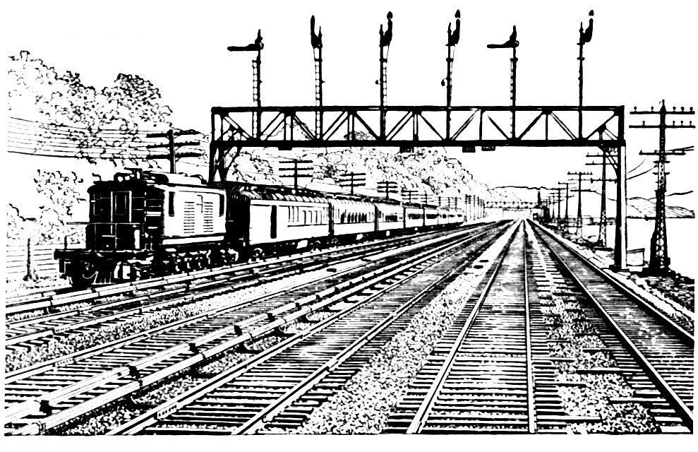 Rock Ballast, Electric Power, Third Rail, Electric Automatic Signals.