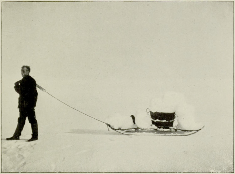 From the month of December, 1898, up to March, 1899, easterly winds were predominating, and these caused a very considerable drifting of the ice. In the course of these three months we drifted in this way from about 87° longitude west of Greenwich as far as to 103°, or a distance of about 950 kilometres (this distance is calculated in a straight line on the seventy-first parallel circle). That this easterly wind, which prevailed for such a length of time and mostly with great violence, was no local wind, we can safely assume. Its place of origin was no doubt the regions around Grahamland and Alexander Islands. This gives me further cause to believe that the sea along the western coast of these countries was perfectly navigable during the months of February and March, 1899. But there is no reason whatever to suppose that this is the case every year. On the contrary, previous expeditions have always found this part of the antarctic drift-ice completely closed. We, on board of the Belgica in February, 1898, also found within the drift-ice along these countries absolutely no navigable water. If a future expedition were to choose the same region where the Belgica did its work for a field of investigation, my unqualified advice to it would be to linger for some time near the coast of these countries, awaiting a separation of the ice from the land. What a great advantage there would be in navigating alongshore! Possibly harbours might be discovered, stations built, and depots established, and one would then always have something to depend on. During our drift in the ice we never dared venture on foot so far out as to lose sight of our ship. It would be wholly different if there were regular stations from which to start the work. We could[452] then safely proceed southward with a sleigh-boat and possibly accomplish fine results, for the antarctic ice, compared to the arctic ice which I have had a chance to observe, is much more level and even, and consequently easier to traverse.