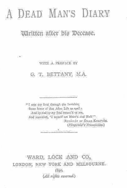 Thus we see that the human mind cannot choose but speculate in some fashion on the future state, while no man has the right to claim that he had said the last word on the subject. It may therefore be confidently anticipated that the remarkable narrative here presented, of which considerable portions have already appeared, serially, in the English edition of "Lippincott's Monthly Magazine," will find a very large number of interested readers, who will be glad to peruse it in the connected and completed form, in which it is best calculated to express the author's full meaning and experiences. It will not by its length or excess of detail overburden the reader, nor does it claim to be more than a narrative of experience which may be left to convey its own lessons. The writer, who prefers to remain anonymous, is one whose essays and stories have been received with high appreciation on both sides of the Atlantic. His narrative is put forth as his actual experience during a lengthened absence from the body, during which he was believed to be dead. Of course no other living person can confirm or deny his experiences, though many may deem them incredible, fictitious, or the imaginings or visions of a trancelike state. I do not pretend to decide to what category they belong, nor do I feel called upon to condemn or approve any of the assertions or opinions thus put forward. If any one holds theological convictions which appear to conflict with them, I would remark that the publishers, in letting the "Dead Man" speak for himself, do not hold themselves responsible for his opinions, merely having assured themselves of the serious spirit in which they are narrated.
