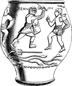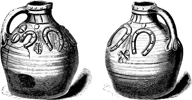 [125] On the quart jugs the figure appeared on one side, and the verse on the other.