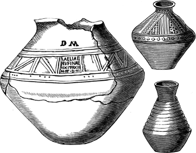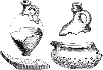 | Romano-British Pottery—Upchurch Ware—Durobrivian Ware—Roman Potters’ Kilns—Pottery in London—Salopian Ware—New Forest Ware—Yorkshire, Oxfordshire, Lincolnshire, and other Wares—Varieties of Vessels: Amphoræ, Mortaria, &c.—Sepulchral Vessels—Tiles—Tile Tombs—Clay Coffins—Lamps—Penates—Coin Moulds, &c. | 24 |