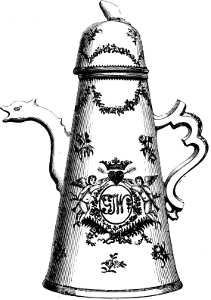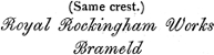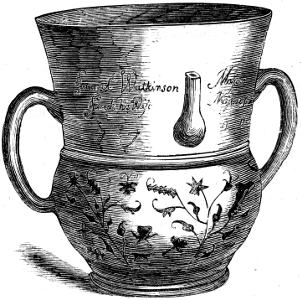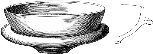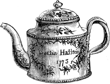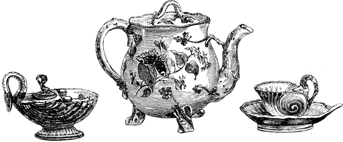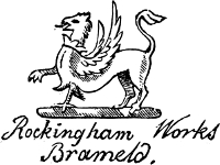 [116] These teapots were of high and somewhat peculiar form, like what are now usually sold as coffee pots, and were universally known as “Rockingham Teapots.” This high form was said to be the reason of the tea being produced of a better quality than in the ordinary shaped ones.