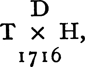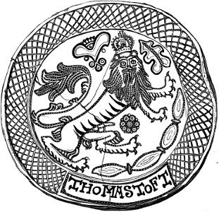 [61] These are mentioned by Walpole as twelve earthen plates in blue and white delft, painted with the twelve signs of the Zodiac by Sir John Thornhill, in August, 1711, bought at Mrs. Hogarth’s sale. They were bought for seven guineas, and are said to have been of Dutch make, and then painted by Thornhill.