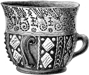 It is impossible to show when the potter’s art was first invented or when it was first brought into use in this island; but that it was practised here in the very earliest days of its being inhabited by its[2] savage population can be abundantly proved. To this pre-historic period, then, I shall first direct attention; and then endeavour to trace the history of the art down from the Celtic to the Romano-British period; from the time of the Romans to the Anglo-Saxons and Normans; and so gradually come downwards through mediæval to modern times, giving, under each separate seat of the more modern manufacture, historical notices of the works and their founders, and descriptive particulars of the more characteristic of their productions.