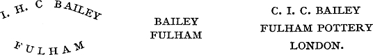 | The Fulham Works—Dwight’s Inventions and Patents—First China made in England—Dwight’s Books of Recipes, &c.—Present Productions—Lambeth—Exchequer Trial—High Street—Coade’s Works—London Pottery—Lambeth Pottery—Fore Street—Waters’ Patent—Imperial Pottery—Crispe’s China—Blackfriars Road—Bas-reliefs for Wedgwood Institute—Vauxhall—Aldgate—Millwall—Mortlake—Southwark; Gravel Lane—Isleworth—Stepney—Greenwich—Deptford—Merton—Hounslow—Wandsworth—Ewell—Cheam—Chiselhurst | 118 |