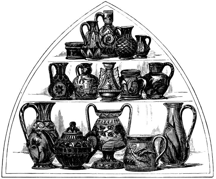 | Pottery of the Norman and Mediæval Periods—Examples from Illuminated MSS.—Norman Potworks at Burley Hill—The Ferrars Family—Mediæval Pottery—Grotesque Vessels—Costrils—Mammiform Vessels—The Cruiskeen or Cruiska—Godets, &c.—Simpson’s Petition—Rous and Cullyn’s Patent—Bellarmines—Ale-pots—Salt-glazing—Butter-pots—Dr. Plott—State of Staffordshire Potteries—Combed Ware—Ariens Van Hamme—John Dwight—The Brothers Elers—The Tofts—William Sans—Tygs—Candlesticks—Cradles, &c. | 76 |