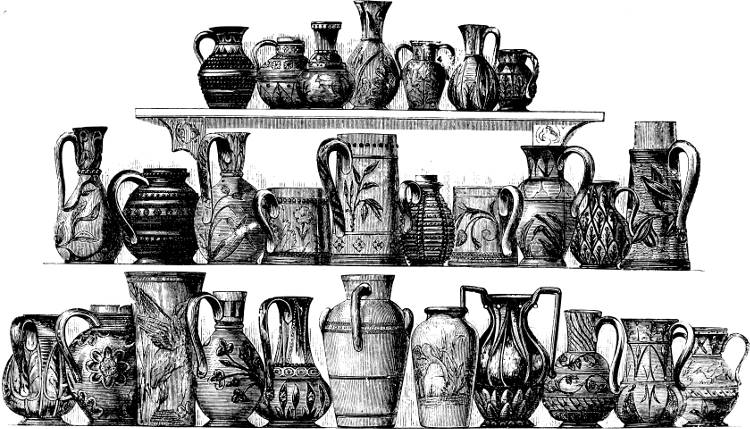 The practice of the fictile art in England dates back, as I have already said, to a very remote period—that of its Celtic or ancient British population, by whom there is abundant evidence it was much esteemed. It is pleasant to know, and to be able indisputably to prove, that from those early days down to the present time the art has, through a long succession of ages, continued with more or less skill, to be observed among us, and that thus in pottery, as in nothing else, an unbroken chain, connecting us in our present high state of civilisation with our remote barbarian forefathers of the stone age, exists. The weapons and other implements of imperishable stone and flint have, long ages ago, died out, and any possible connection between them and the weapons or tools of our own day has died with them; but the vessels of simple clay have an abiding-place with us which has lasted without a break until now, and will yet last for ever. Hitherto the course of the potter’s art has been one of constant and gradual improvement; but its capabilities for further development are almost unbounded, and another generation will witness advances of which we can now but dimly dream.