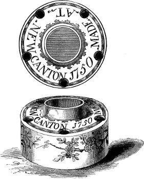 [89] Mr. Owen has shown that previous to December, 1765, china had been attempted to be made in Bristol. In November of that year, Champion wrote, in reference to some clay from Carolina, “I sent part to Holdship, as you desired, and gave part to a new work just established.... This new work is from a clay and stone discovered in Cornwall, which answers the description of the Chinese,” &c.; and on December 15th, “I have had your clay tried at the works here, which is now given up, as they could not burn the ware clean.” Probably either Cookworthy was connected with these short-lived works, or they were carried on under license from him.
