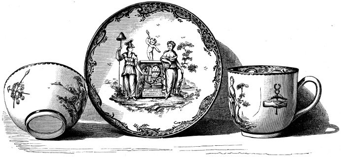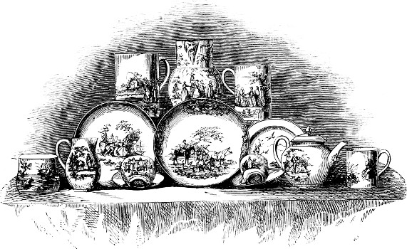 [80] The Battersea works were carried on, it is said, by Alderman Jansen, who failed in 1756, and soon afterwards the Worcester printing began.