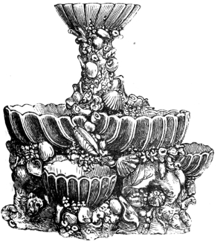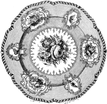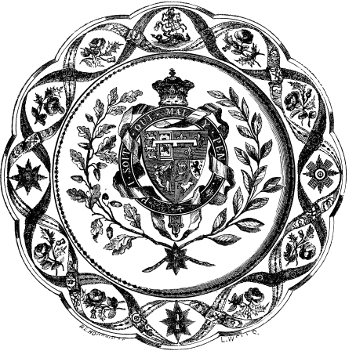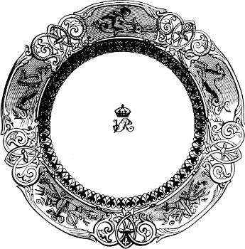 [121] This truly exquisite plate, which is a perfect chef-d’œuvre of ceramic art-decoration, was designed by Mr. Thomas Brameld, after the death of King William IV., and submitted to her present Majesty, Mr. Brameld proposing to substitute it for the plates made for his late Majesty. The Queen, however, did not give her consent to the alteration. The cost of the substitution would, it is stated, have been £1,700.