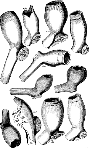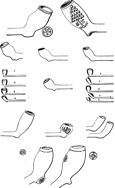 [87] “They are called “Fairy Pipes” in this neighbourhood, and the small bowls with broken stem have been occasionally found on my estate at St. James’s.”—H. S.