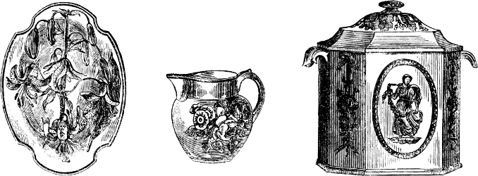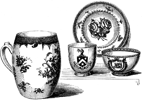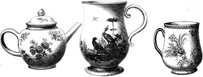 [117] Mr. Allen, of Lowestoft, at one time was in the habit of purchasing white wares from the Rockingham Works, which he painted and burnt in an enamel kiln, erected at the back of his shop.