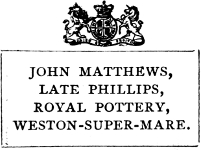 [100] Thomas Patience, “victualler and potter,” kept the Cross Keys, Temple Street, the “potters’ house of call.”—(Sketchley’s Directory.)