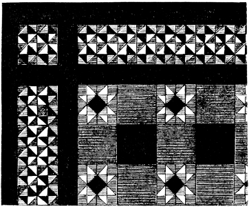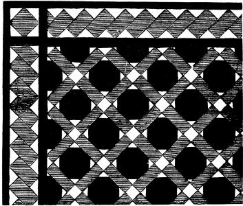 [107] A copy of this most interesting pattern-book—from which, however, three plates are missing—is in the Museum of Practical Geology, Jermyn Street, London, which has the English list, 1786; German, 1783; and French, 1785. I have also copies bearing the date 1794, and others undated.