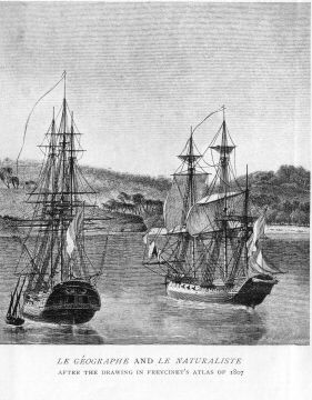 Meeting of the Investigator and Le Geographe in Encounter Bay.