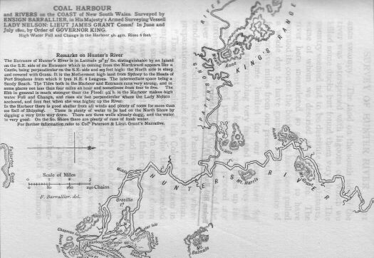 Coal Harbour and Rivers on the Coast of New South Wales. Surveyed by Ensign Barrallier, in His Majesty's Armed Surveying Vessel Lady Nelson: Lieutenant James Grant Commander. In June and July 1801, by Order of Governor King.