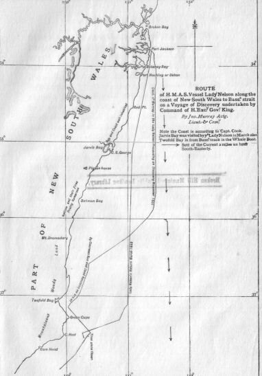 Note the Coast is according to Captain Cook. Jarvis Bay was visited by ye Lady Nelson in March 1801. Twofold Bay is from Bass's track in the Whale Boat.