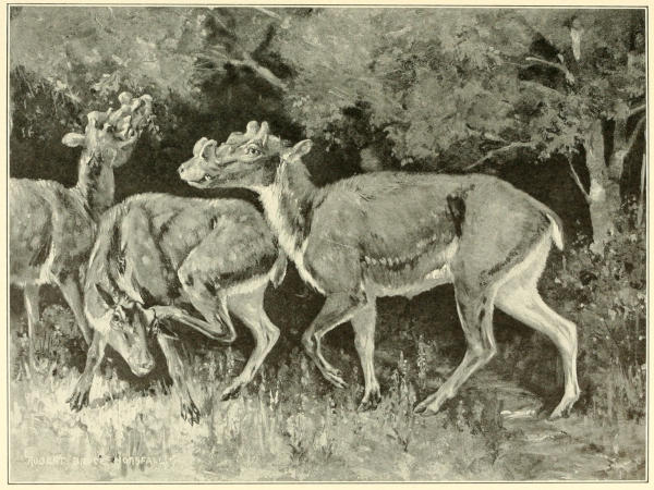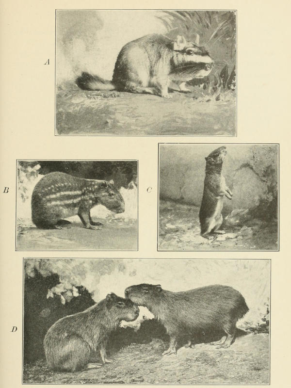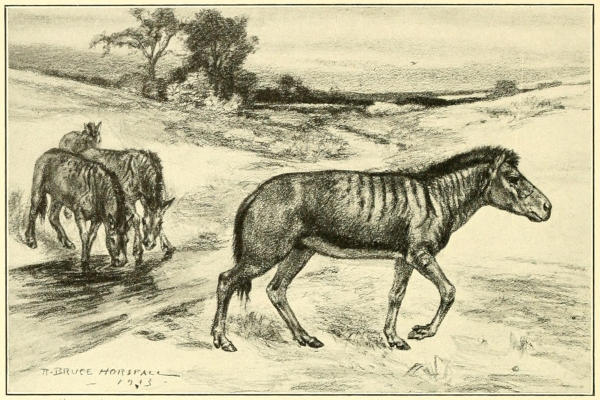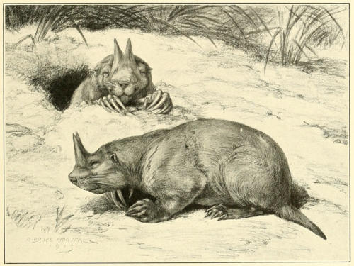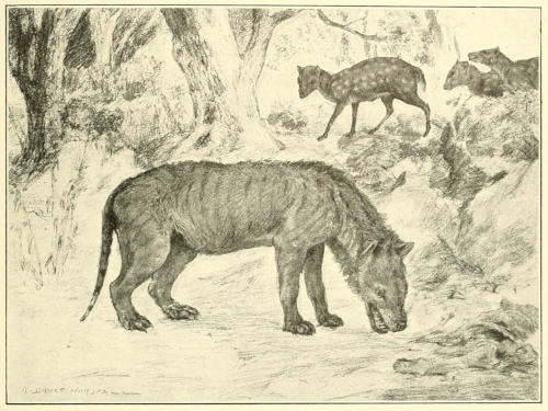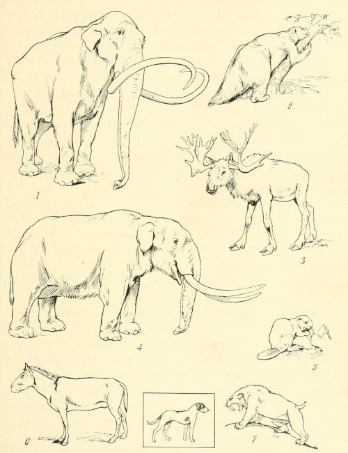 The figures of existing animals are almost all from photographs taken in the New York and London zoölogical gardens, and I desire to thank Director Hornaday, of the Bronx Park, and Mr. Peacock, of the London garden, for the very kind manner in which they have procured these illustrations for my use. The photographs have been modified by painting out the backgrounds of cages, houses, and the like, so as to give a less artificial appearance to the surroundings.