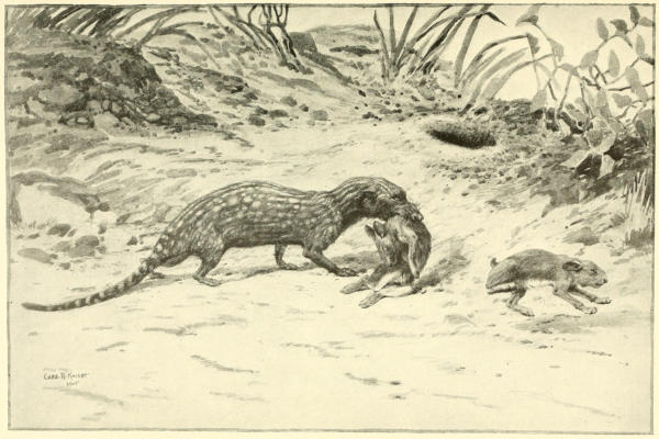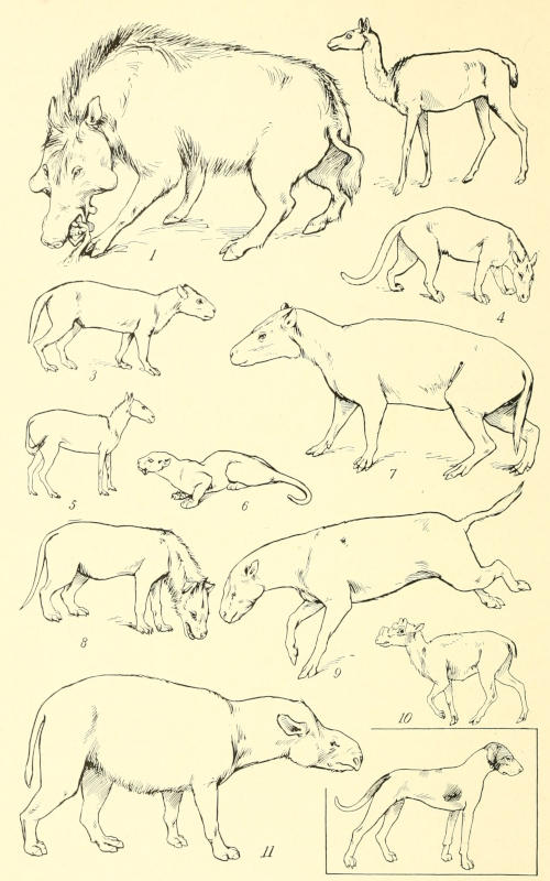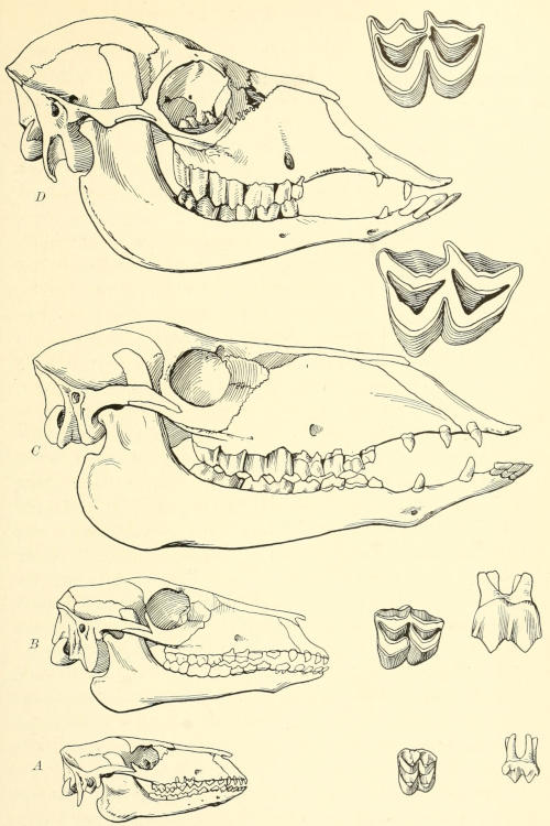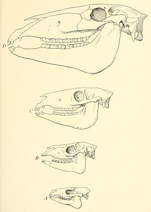 The western portion of North America has preserved a marvellous series of records of the successive assemblages of animals which once dwelt in this continent, and in southernmost South America an almost equally complete record was made of the strange animals of that region. For the last half-century, or more, many workers have coöperated to bring this long-vanished world to light and to decipher and interpret the wonderful story of mammalian development in the western hemisphere. The task of making this history intelligible, not to say interesting, to the layman, has been one of formidable difficulty, for it is recorded in the successive modifications of the bones and teeth, and without some knowledge of osteology, these records are in an unknown[xii] tongue. To meet this need, Chapter III gives a sketch of the mammalian skeleton and dentition, which the reader may use as the schoolboy uses a vocabulary to translate his Latin exercise, referring to it from time to time, as may be necessary to make clear the descriptions of the various mammalian groups. Technical terms have been avoided as far as possible, but, unfortunately, it is not practicable to dispense with them altogether. The appended glossary will, it is hoped, minimize the inconvenience.