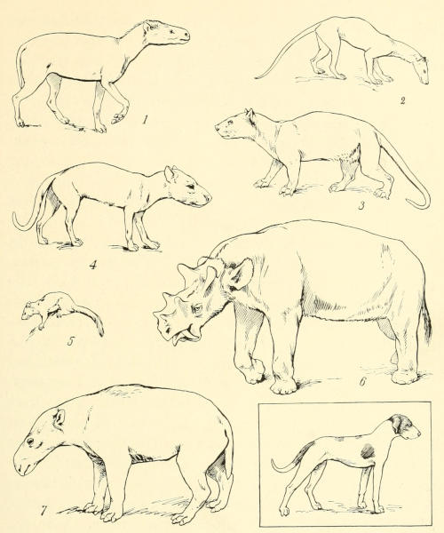 It is a pleasure to give expression to my sincere sense of gratitude to the many friends who have helped me in an unusually laborious undertaking. Professor Osborn and Dr. Matthew have placed at my disposal the wonderful treasures of the American Museum of Natural History in New York and in the most liberal manner have supplied me with photographs and specimens for drawings, as well as with information regarding important discoveries which have not yet been published. Dr. W. J. Holland, Director of the Carnegie Museum in Pittsburgh, has likewise generously provided many photographs from the noble collection under his charge, kindly permitting the use of material still undescribed. To Professor Charles Schuchert, of Yale University, I am also indebted for several photographs.