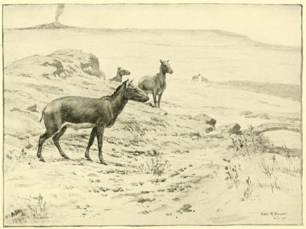 One afternoon in June, 1876, three Princeton undergraduates were lying under the trees on the canal bank, making a languid pretence of preparing for an examination. Suddenly, one of the trio remarked: “I have been reading an old magazine article which describes a fossil-collecting expedition in the West; why can’t we get up something of the kind?” The others replied, as with one voice, “We can; let’s do it.” This seemingly idle talk was, for Osborn and myself, a momentous one, for it completely changed the careers which, as we then believed, had been mapped out for us. The random suggestion led directly to the first of the Princeton palæontological expeditions, that of 1877, which took us to the “Bad Lands” of the Bridger region in southwestern Wyoming. The fascination of discovering and exhuming with our own hands the remains of the curious creatures which once inhabited North America, but became extinct ages ago, has proved an enduring delight. It was the wish to extend something of this fascinating interest to a wider circle, that occasioned the preparation of this book.