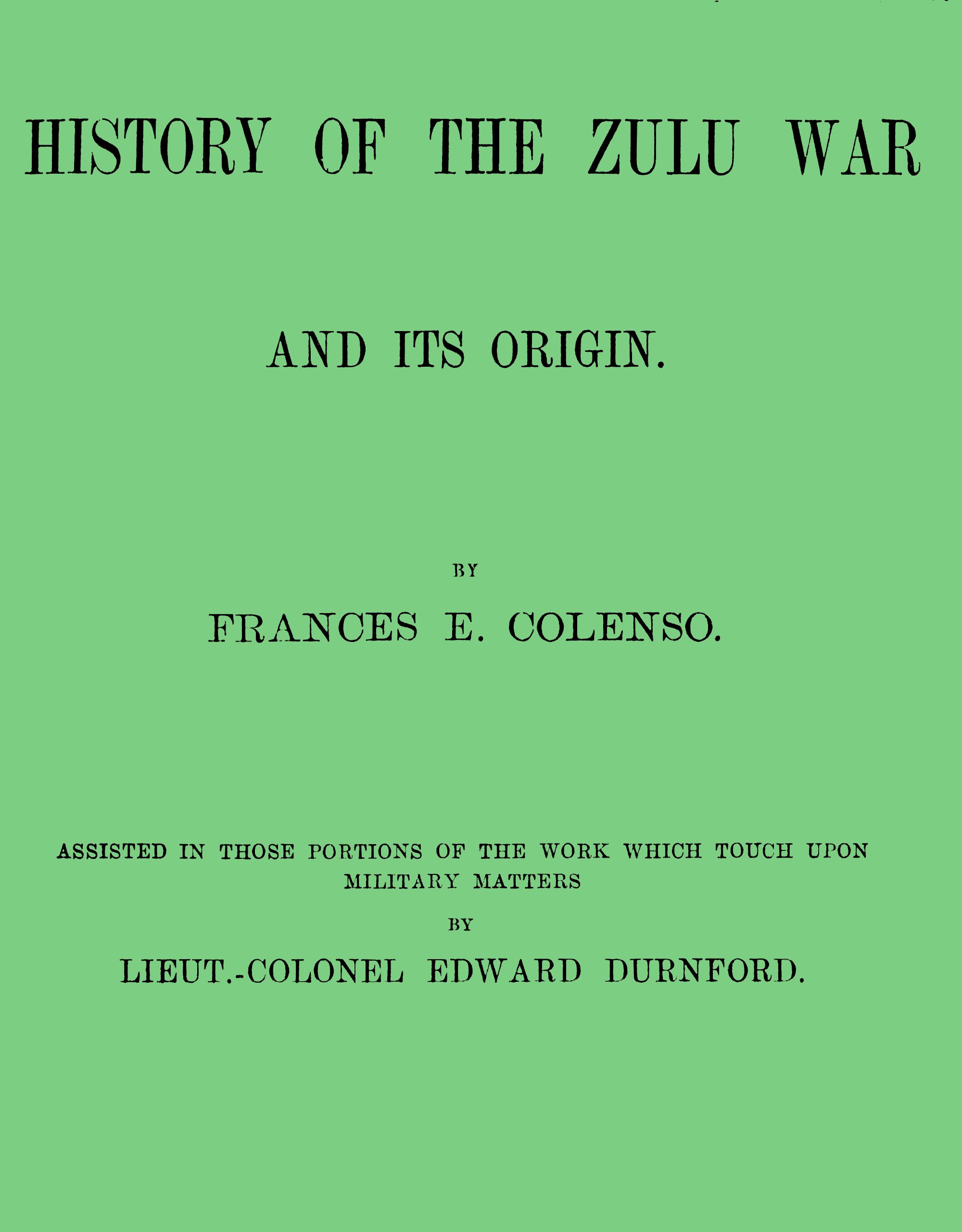 It is probable that the Bishop of Natal may be held responsible for the contents of a volume written partly by his daughter, and having for its subject the Zulu War; more especially if a general coincidence can be traced between what are known to be his views and those which are expressed in this history. My father’s opinions have, naturally, considerable influence over those held or expressed by his family, and I do not imagine that much will be found in these pages from which he will dissent. Nevertheless, it is desirable that my readers should understand from the first that he is in no sense responsible for their contents.