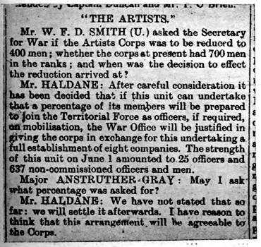 Despite the gloom that may sometimes come to us at happenings in these present times, my firm conviction is that so long as we can produce men of the quality of those whose names and deeds are enshrined in this Roll of Honour we can go forward joyfully and with every confidence into the unknown future. And may we all be inspired to carry out our present obligations and duties patriotically, and to live henceforth lives worthy of the example of those 2,003 Artists who died for us that we as an Empire might live. This would be the best War Memorial of all.