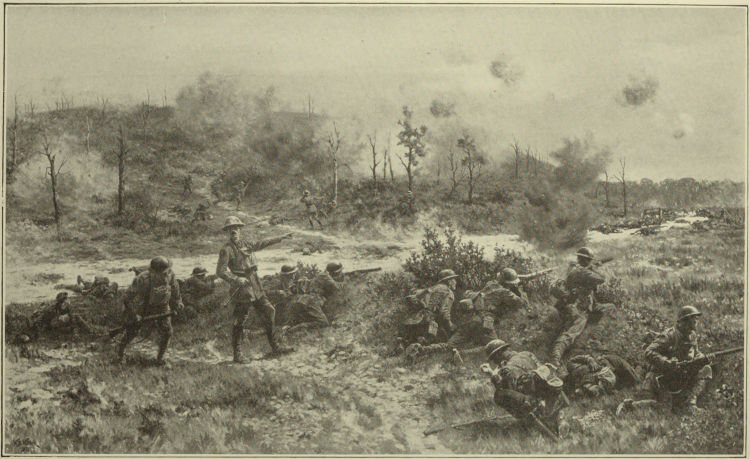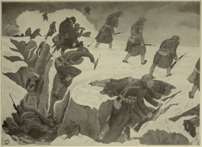 “The London Regiment and the Royal Fusiliers fought this battle, and not far from them were the Artists’ Rifles—the dear old ‘Artists,’ who, in the old volunteer days, looked so dandy in their grey and silver across the lawns of Wimbledon. They suffered yesterday in hellish fire, and made heavy sacrifices to prove their quality. It was a fight against the elements, in league with the German explosives, and it was a frightful combination for the boys of London and the clean-shaven fellows of the Naval Brigade.”