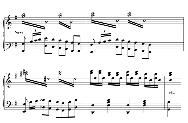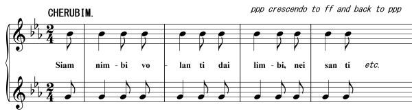 This, of course, is an approximation to the modern orchestra, but we must notice the absence of clarionets and percussion instruments.